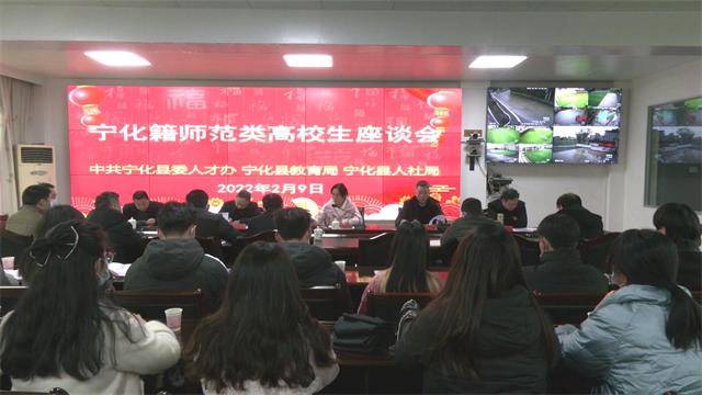 2月9日,宁化县教育局召开宁化籍师范类高校生座谈会,宁化县人民政府副县长周美华出席会议,宁化县人社局、教育局、宁化一中、宁化六中相关人员及数十位宁化籍在校师范类高校生参加会议。