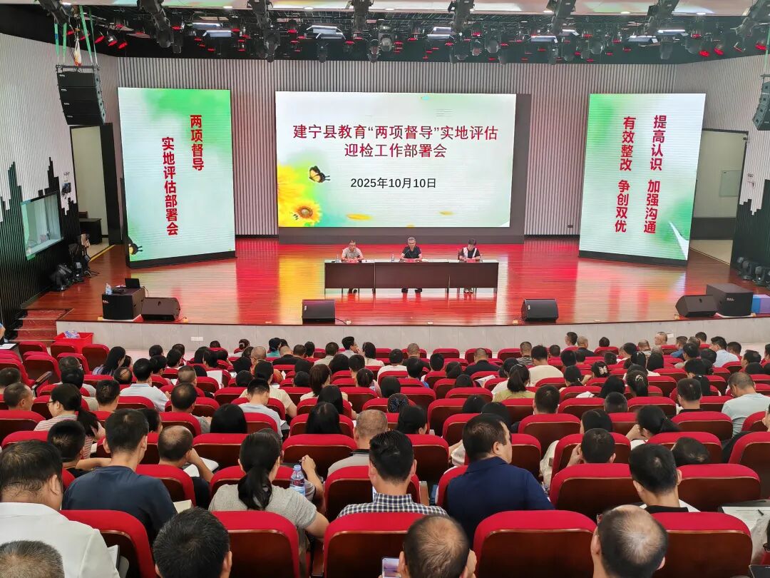 10月10日下午,建宁县召开教育“两项督导”实地评估迎检工作部署会。会议由县政府副总督学、教育局党组成员纪霞主持。