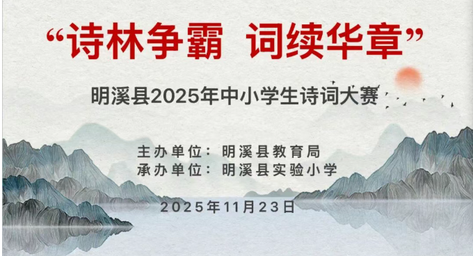 为深化“两香校园”建设,弘扬中华优秀传统文化,11月23日,明溪县教育局开展“诗林争霸 词续华章”2025年中小学生诗词大赛,选手们以诗为媒,共赴一场跨越千年的文化之约。