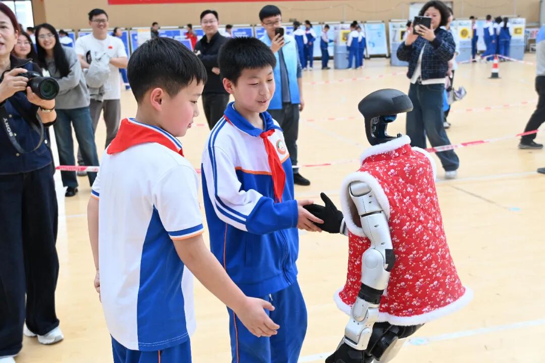 孩子们在各个展台前排起长队,亲手操作、亲身体验,感受科学的神奇。场地中央,伴随着动感音乐,机器人列队起舞,灵动的动作引来同学们阵阵欢呼。与此同时,舞台上《干冰液氮秀》《马德堡半球》等科普实验轮番上演,辅导员们用生动有趣的表演,将抽象的科学原理变得看得见、摸得着,引得台下掌声不断。