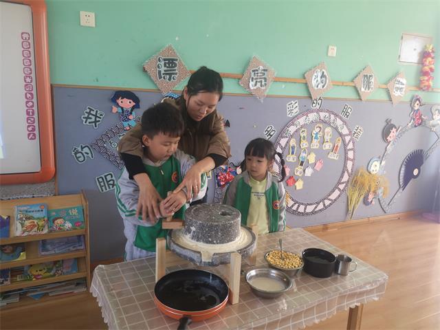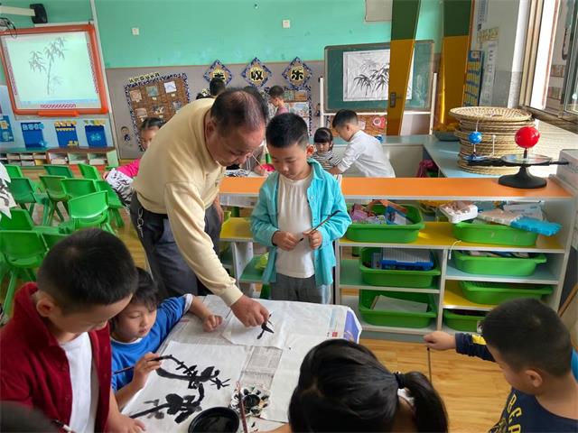 本次活动充分发挥家长自身优势、挖掘客家乡土文化,把“客家小吃”“客家农具”“客家特产”“客家茶文化”“黄慎水墨画”等客家地域文化特色等带入幼儿园,通过课件展示、示范讲解、故事表演、游戏互动、现场绘画等形式,让幼儿一起体验客家浓浓的乡情。大一班的助教爷爷带来一节水墨画《竹子》,激发孩子对水墨画的兴趣,让幼儿体验通过笔划粗细、墨的干湿变化、浓墨和淡墨、表现出来的效果;大七班的助教妈妈通过课件介绍客家打糍粑文化,并引导幼儿用客家农具“石磨和石臼”磨豆粉和舂米,孩子们动手揉、捏、搓、尝好吃的糍粑;大二班和大四班的助教妈妈们带来了松丸子和客家豆浆,现场教幼儿制作松丸子、体验石磨豆浆的乐趣,锻炼幼儿的动手能力;大六班的助教爸爸向孩子们介绍茶的种类,重点介绍了宁化特产孔坑贡茶历史,并带给小朋友们认识和品尝。
