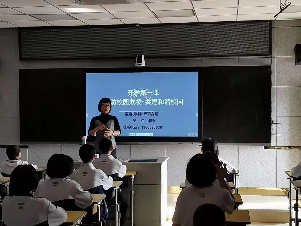 3月2日,三明市第十中学组织开展了预防校园欺凌专题讲座。讲座由枫桦律师事务所的吴红律师主讲。