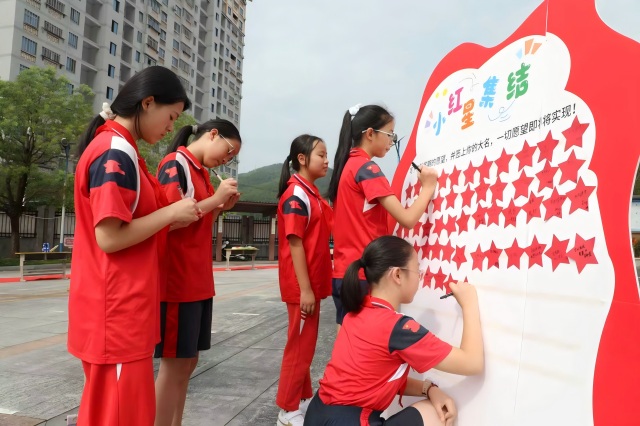 学校还为孩子们准备了“小红星集结”,供孩子们写下新学期愿望和目标,让全校师生共同见证成长愿景。为营造浓厚的开学氛围,激励全校学生振奋精神、锐意进取,学校通过充气的宇航员、星球和中国航天火箭模型等,用满满的仪式感给同学们送上奇妙又暖心的“开学礼”。(廖金莲 邱丽英)