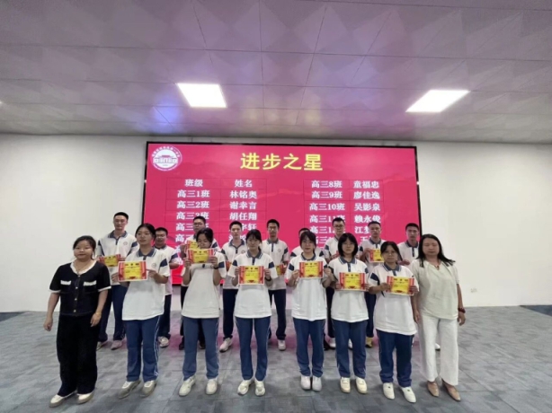 二、榜样领航燃斗志,心理护航稳心态。10月16日高三年段召开第一次月考表彰暨总结大会,会议由肖霞段长主持。此次会议不仅是对优秀学子的肯定,更是一次面向全体高三学生的“备考动员课”。会议现场气氛热烈,让学生在榜样的激励下明确方向,在温暖的引导中调整心态,以更饱满的状态投入冲刺。表彰完成后,肖霞段长针对高三开学以来同学们学习现状提出三点建议:一是优化时间管理,严守学习纪律。明确“上课不迟到、自习不闲聊、作业不抄袭”等要求,并通过“班级监督”“年段巡查”双重保障纪律落实,引导学生摒弃“拖延症”“假努力”,把每一分钟都用在“刀刃”上。二是关注内心世界,学会自我调适。备考压力下,学生的心理状态尤为重要。当学习效率下降时,可进行“10分钟课间拉伸”或“与同伴轻声交流”转移注意力。三是凝聚全部力量,全力以赴冲刺。课堂上做到专注听讲,不浪费一秒钟;作业中认真思考,不敷衍每一题;考试后及时复盘,不放过一个错。高考不是一个人的战斗,而是全体高三师生的共同征程。以誓言为诺,用汗水浇灌梦想,用坚持书写奇迹!