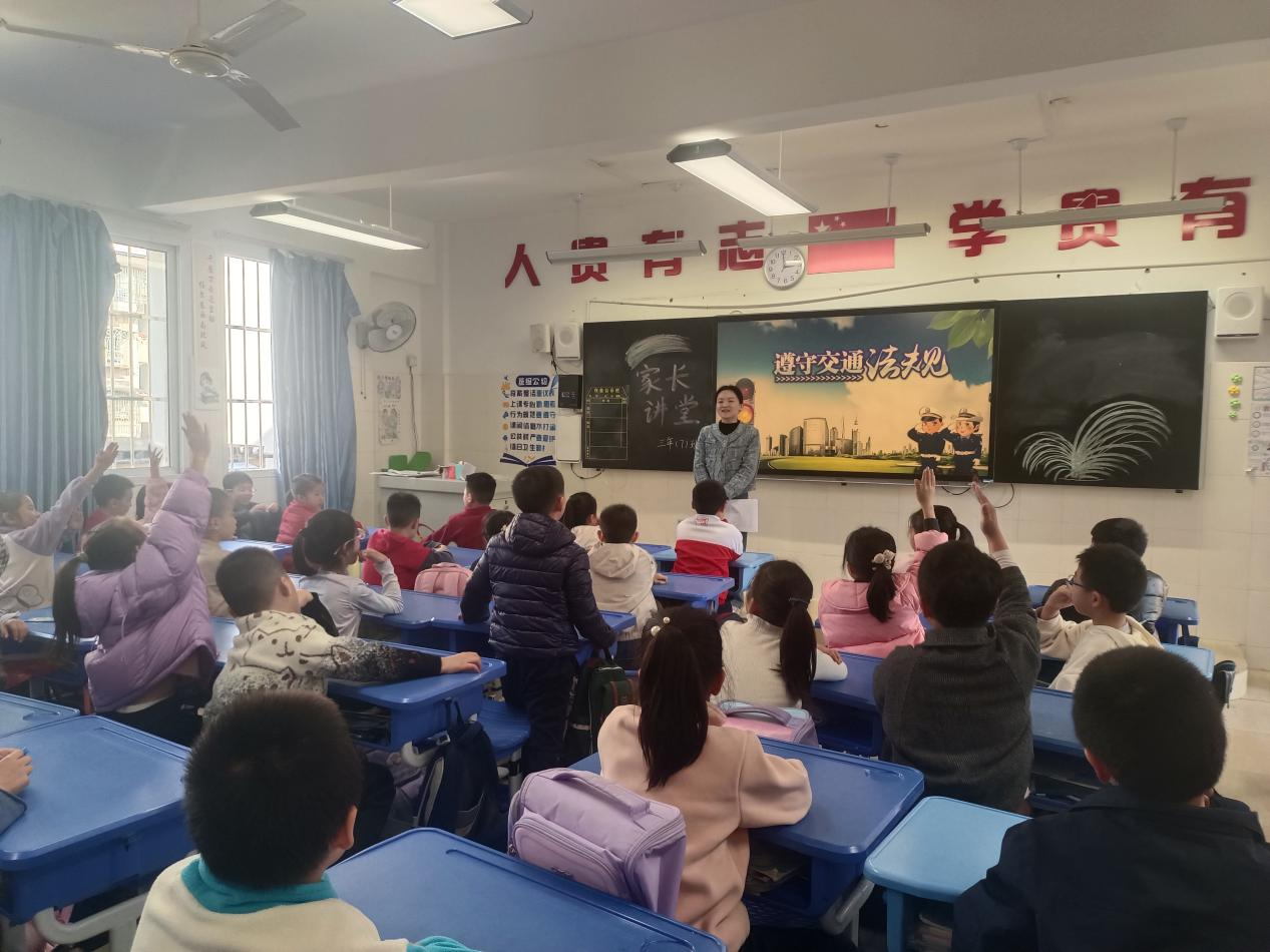 “我们在生活中需要遵守哪些交通规则呢?”在互动环节,詹恋法官的一个问题,点燃了班级同学们的热情,纷纷举手回答。“未满12周岁不得骑自行车上路。”“不能酒驾。”现场气氛活跃。詹恋法官结合小学生的日常出行场景,系统普及“步行、骑行、乘车”三大环节的安全规则。针对步行安全,她重点强调“红灯停、绿灯行,过马路必须走斑马线,且要先观察左右车辆,确认安全后再通行”;在骑行规则讲解中,明确骑自行车上路的年龄限制,倡议骑行时佩戴头盔,做好安全防范措施;针对乘车安全,普及“后排乘坐要系好安全带,儿童需使用安全座椅,车辆停稳后再上下车”等知识,让学生清晰掌握乘车时的注意事项。同时,围绕“酒驾”“疲劳驾驶”的危害,引导学生思考如何劝阻家人违规行为,帮助学生树立“守护家人安全”的意识,进一步强化规则认知。