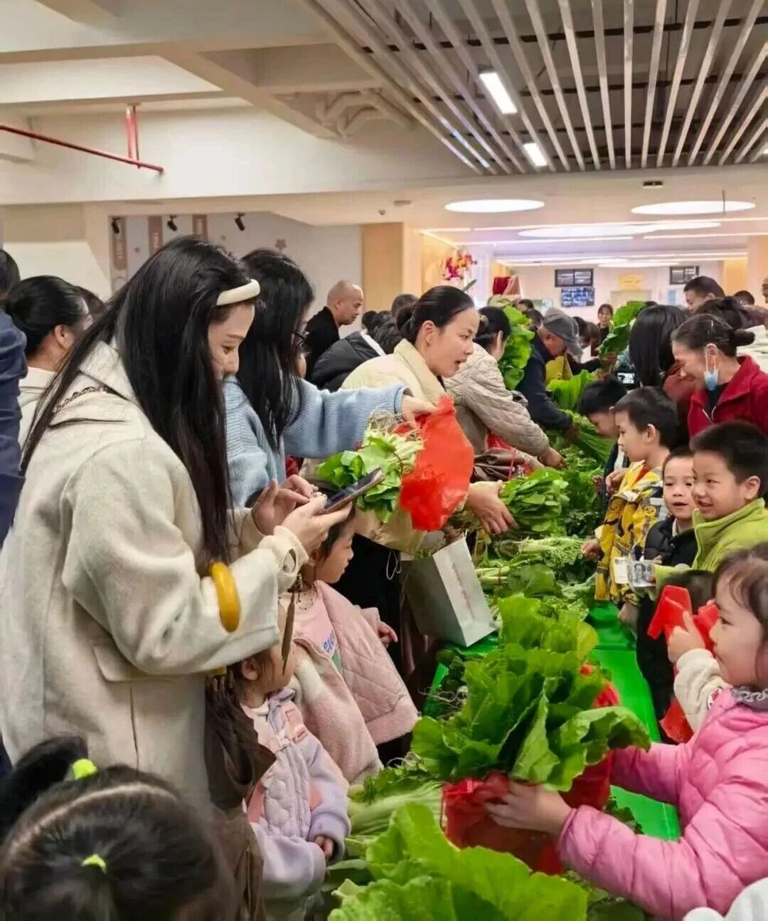 活动中,小蕉分园的幼儿在教师引导下,亲手参与蔬菜的采摘与打包工作,近距离感受农作物收获的喜悦,直观了解植物生长的成果;总园幼儿则化身 “小摊主”,将采摘的蔬菜整齐摆放后卖力吆喝招揽顾客,充满童真的 “小市场” 洋溢着暖意。此次义卖所得款项将全部用于农场后续的育苗与养护工作,形成劳动教育的闭环。