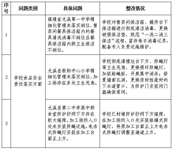 市教育局高度重视校园食品安全及膳食经费管理突出问题专项工作,结合市教育局、市场监管局、财政局联合开展的2025年秋季学期校园食品安全和膳食经费管理突出问题专项整治工作“回头看”抽查,有效推动存在问题整改,防范化解中小学学生在校集中用餐食品安全风险,守护青少年“舌尖上的安全”。现将部分整治成果公布如下: