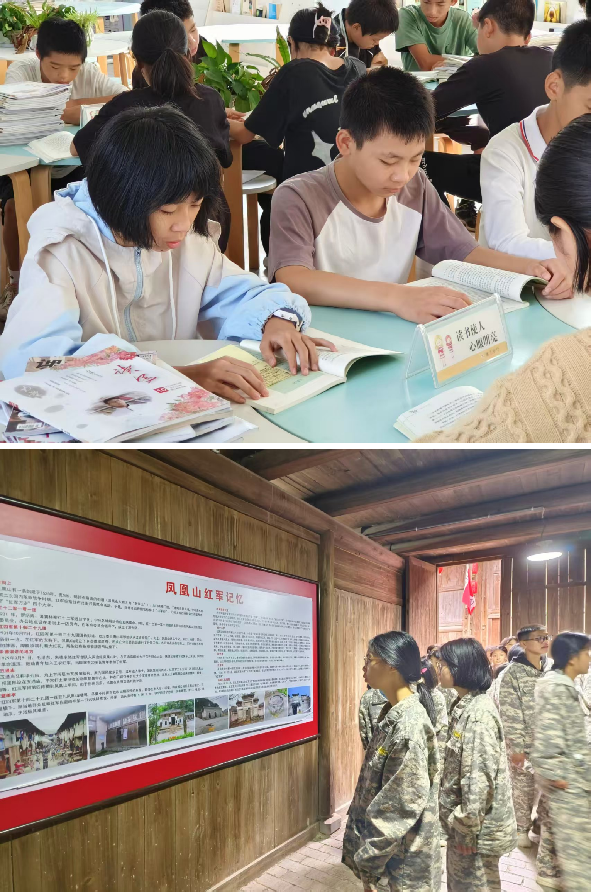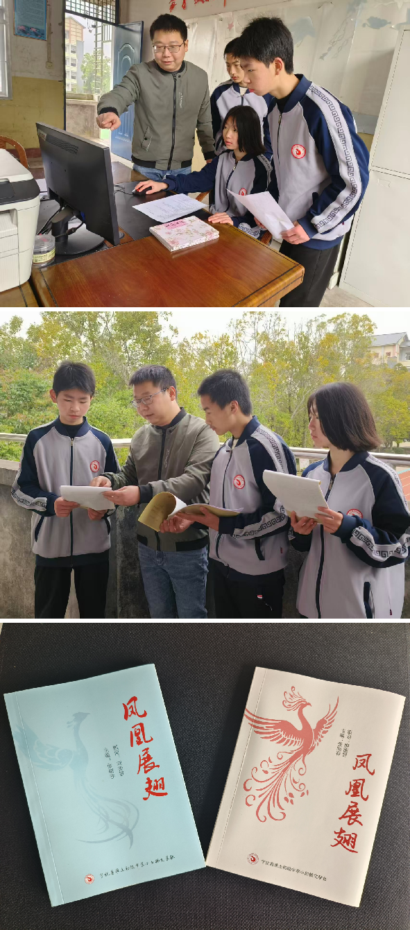 一、注重课程重构,强化文学浸润。学校文学社团课程以“情感浸润—文化认同—人格完善”三个阶梯递进:基础层主要通过写作宣泄情感,建立心理安全感;深化层主要挖掘红色文化、客家文化,增强文化自信;升华层主要以文学创作为媒介,培育社会责任与家国情怀。一是用好基础课程。注重语文课堂的文学浸润,在教材重构上,将统编版教材与乡土资源结合,七年级增设“情感微写作”单元,设计《母亲的竹编筐》《老屋门前的桂花树》等主题;八年级对接“革命文化”主题,补充《淮土红色家书》《红军井的故事》等校本文本;九年级开设“思辨写作”,围绕乡村振兴撰写调研报告。二是建好社团课程。坚持开好每周1课时文学社团课。课程内容分为采风实践、文体训练、心理工坊三个模块,以“走访凤凰山红军街,记录口述历史学习”、乡土散文写作技巧和“树洞故事”匿名创作为内容。同时,注重开展社团特色活动,如“文学盲盒”,随机抽取“老照片”“旧农具”等实物触发创作灵感;“跨时空对话”,给20年后的家乡写信,或为历史人物撰写颁奖词。三是融合课程。注重跨学科协同育人,重点突出三个融合。探索文史融合,与历史组合作编写《淮土红色印记》,学生采访老党员、红二代形成近万字口述史;探索文美共创,联合美术社开展“诗画淮土”项目,为农民画配诗,制成明信片义卖;探索文劳结合,在劳动基地种植“文学试验田”,记录作物生长日记,感悟生命哲理。