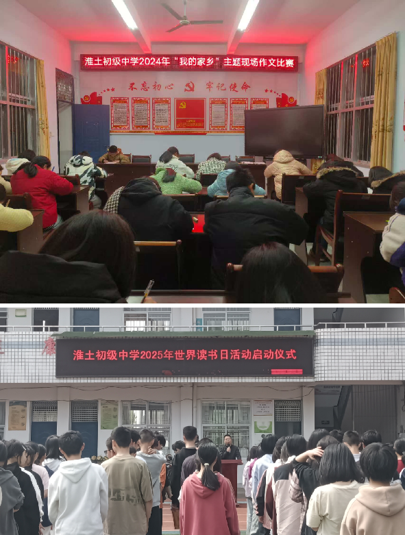 二、丰富活动载体,强化文学实践。一是常态活动。“每日一诗”晨读:精选艾青、舒婷等诗人作品,通过诵读唤醒语言敏感性;“心灵驿站”日记本:设置班级漂流日记,学生可匿名书写心事,教师定期批注鼓励。二是主题创作。四季主题写作:如春季《梯田上的播种者》(叙事诗),夏季《暴雨中的晒谷场》(场景描写),秋季《爷爷的烟斗与丰收》(人物特写),冬季《围炉夜话》(家庭故事)。开展“淮土十二时辰”采风,分组记录乡镇不同时段的生活场景,形成非虚构文学集。三是读书交流。结合世界读书日发动图书漂流,共收到师生捐赠图书50余本,阅览室变身“流动图书馆”,师生通过交换书籍拓宽阅读视野;利用语文课堂组织师生共读,以《钢铁是怎样炼成的》《城南旧事》等经典为载体,形成读后感30余篇,深化情感共鸣与文本理解;各年级制作图书推荐卡50余份,评选出15份“读书破万卷,下笔如有神”等格言成为校园文化新符号。四是校园征文。举办“我的家乡”主题现场作文比赛,以宁化县淮土镇的山川风物、村落建筑、民风民俗、典型人物、乡村趣事、文旅感怀等为题材,评选出优秀作文26篇。