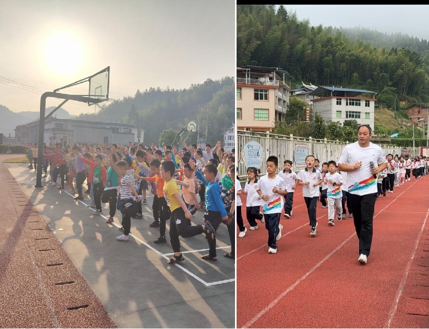 一是在坚持中锤炼意志。晨跑过程中,鼓励学生克服惰性、挑战自我,低年级学生体力不支时,老师与高年级学生主动陪伴鼓劲,让“不放弃”的信念融入日常。有位曾因肥胖自卑的畲族男孩,在持续晨跑后不仅体重下降,还主动参加校运会,收获了突破自我的勇气,彰显了奔跑对意志品质的塑造。二是在协作中凝聚情感。通过亲子跑、师生共跑等形式,拉近家校距离与师生关系。畲族家长在陪跑中见证孩子成长,增强对学校教育的认同;老师在陪跑中倾听学生心声,增进情感交流。奔跑时的互相鼓励、冲线时的共同欢呼,让畲乡校园充满团结向上的氛围,也让民族文化中的协作精神在运动中传承。