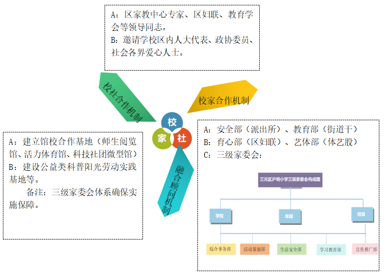 1.学校致力于构建一个全方位的育人共同体,通过校家合作机制、校社合作机制、融合顾问机制形成一个相互支持、参与的育人“教联体”,促进资源共享,凝聚社会力量,共同推进育人工作。