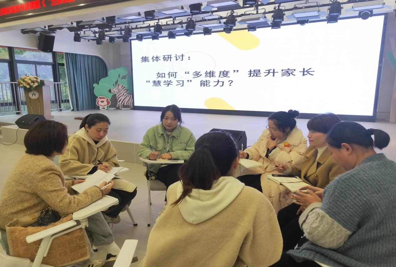 智慧引领,构筑家园共育基石。一是聚能:组建专业培育团队。在总校带领下,联合洋溪中心幼儿园、列西幼儿园、沪明幼儿园、贵溪洋第二幼儿园建立以总校园长为核心的家长教育工作领导小组,由总校园长、副园长及各分园家校副园长、骨干教师组建成“四慧”家长培育团队,共有家校讲师5人。二是定向:明晰培育方向目标。以“多维度提升家长有效陪伴、沟通、支持、学习的家庭教育专业素养,助力家长科学实施家庭教育”为目标,探索培育“四慧”家长的新路径。明确“四慧”内涵,“四慧”家长即为拥有智慧沟通能力、慧心陪伴素养、慧眼发现技巧以及慧行示范意识的家长。团队分园所、分成员分别从“慧陪伴、慧沟通、慧支持,慧学习”四个内容制定了详细的家长培育目标和标准,为家长的成长锚定方向。三是赋能:提升专业指导能力。列东实幼总校将家庭教育培训作为教师专业化发展关键引擎,积极为共同体各园提供系统化、持续性的家庭教育培训资源。一方面,充分利用国家智慧教育平台进行自主学习,开展内部培训、举行班主任经验交流分享活动,并鼓励教师参加外出培训,持续增强团队的家校指导能力。另一方面,带领总校共同体各园所家校工作骨干深入开展课题研讨,涵盖《如何“多维度” 提升家长 “慧学习”、“慧支持” 能力》《如何实现高质量的亲子陪伴》《融合倾听、表达、解决冲突等技巧,实现与孩子高效情感与信息交流》等主题,为提升家校共育水平注入创新活力。