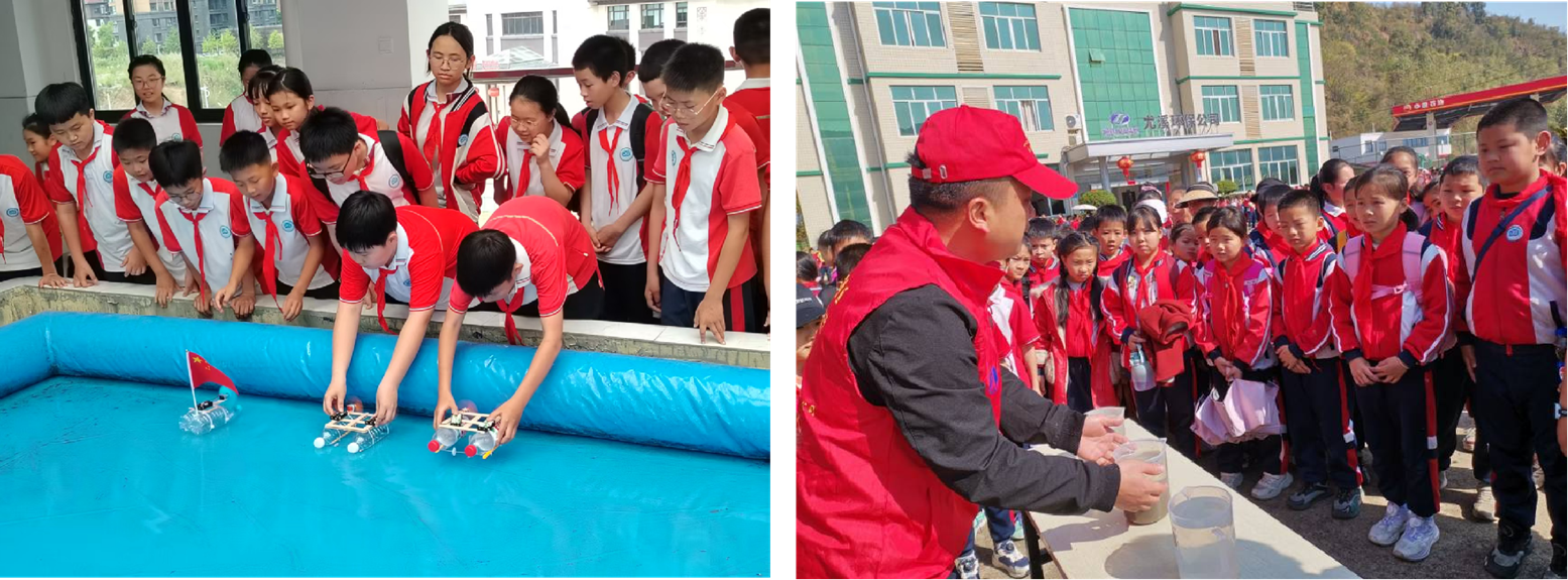 打破“单一课堂教学”局限,构建“校内+校外、必修+选修、理论+实践”立体化课程体系,实现科学教育的全覆盖与深渗透。一是校内社团课程。以周四社团课、周末艺校为载体,开设航模、机器人编程等“1套核心课程+N个特色项目”,配备专职教师与外聘专家,形成“基础—进阶—竞赛”分层培养路径。2024年,机器人编程社团5名学生获三明市第一届中小学生创客大赛二、三等奖;科学实验操作社团学生在尤溪县小学科学实验操作竞赛中斩获二、三等奖各1项。二是家长讲堂活动。组建“家长科普讲师团”,整合医生、工程师、气象工作者等家长资源,开展“烫伤急救”“农业种植中的科学”“世界气象日专题讲座”等主题活动,2024年累计开展80场次,实现家庭与学校科学教育的深度融合。三是校外合作课程。联合县科技馆、气象局等单位,打造“行走的科学课堂”。2024年组织学生参观气象局,开展“科普大篷车进校园”活动,邀请省农科院专家开展种植讲座,引导学生在“星际园”基地实践,衔接校内学习与校外实践。