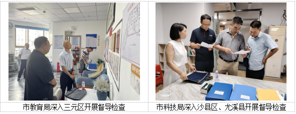 为深入贯彻落实党中央、国务院决策部署和省、市工作要求,持续巩固“双减”成果,防范校外培训机构安全事故发生,8月10日以来,市“双减”办统筹协调市教育局、科技局、民政局、文旅局、市场监管局、体育局分别带队,属地住建、消防部门共同参与,对全市11个县(市、区)开展校外培训机构安全专项治理暨暑期校外培训“监管护苗”行动联合指导。